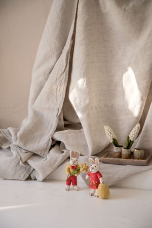 | Modell | Filz Hänge Hase Weiß mit gelber Jacke & Hose Korall & Blume Én Gry & Sif |