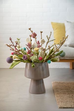 Dieser zarte Blätterstil eignet sich perfekt für eine wunderbare Fenster-Deko. Bringen Sie von Ihrem nächsten Spaziergang einfach einen interessant geformten Zweig mit nach Hause und hängen Sie diesen in Ihr Fenster. An diesen können Sie dann ganz nach Belieben z.B. diesen Zweig, aber auch andere hübsche Deko-Objekte unseres Herstellers Én Gry & Sif aus Dänemark hängen. Wir führen eine große Auswahl dieser Filz-Schönheiten, die Sie je nach Jahreszeit immer wieder neu an Ihre Dekoration Zuhause anpassen können.